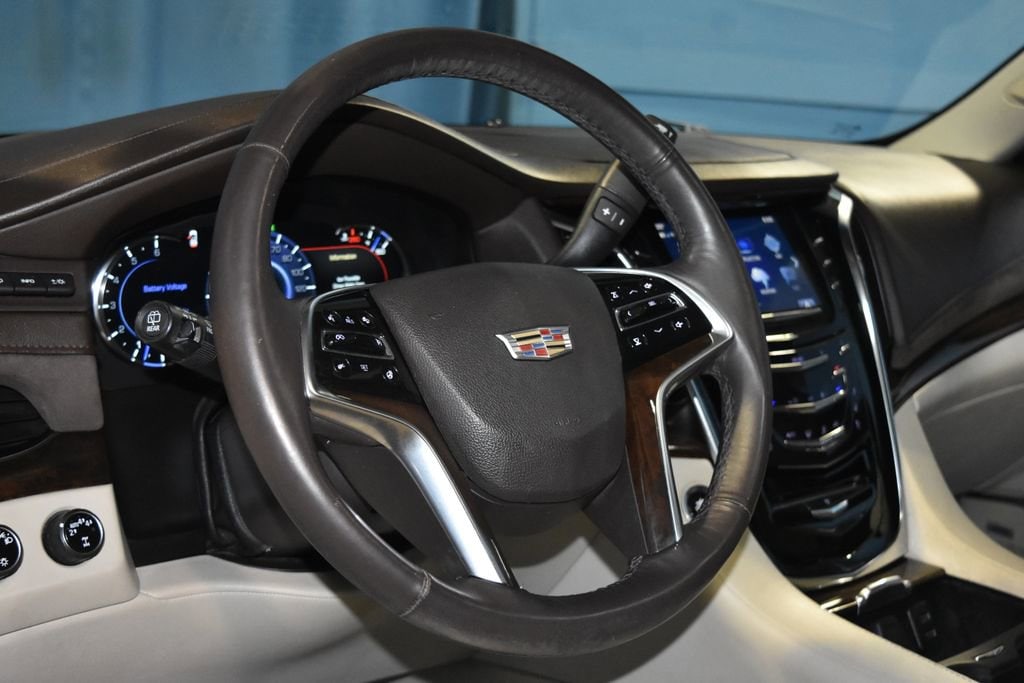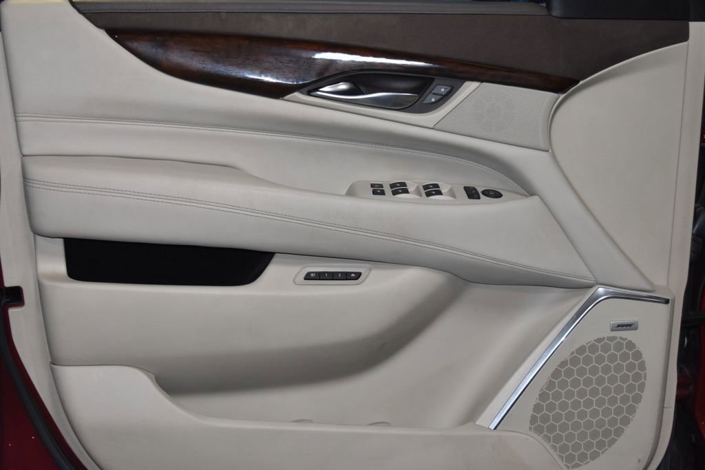 - LPO ALL-WEATHER CARGO MAT,WHEELS 22 X 9 (55.9 CM X 22.9 CM) 7-SPOKE ALUMINUM with premium paint and chrome inserts (STD),CADILLAC CUE INFORMATION AND MEDIA CONTROL SYSTEM WITH EMBEDDED NAVIGATION 8 diagonal color information display featuring touch response haptic feedback gesture recognition Natural Voice Recognition Phone Integration for Apple CarPlay and Android Auto capability for compatible phone Collection and Teen Driver. Five USB ports including one in the articulating storage door/bin and auxiliary audio port (STD),LUXURY PREFERRED EQUIPMENT GROUP Includes Standard Equipment,RED PASSION TINTCOAT,LPO WHEEL LOCKS SET OF 4,LPO ALL-WEATHER FLOOR MATS 1ST 2ND AND 3RD ROW,REAR AXLE 3.23 RATIO,SEATS FRONT BUCKET with leather seating surfaces driver and front passenger 12-way power seat adjusters including 4-way power lumbar control independently heated driver and front passenger seat cushions and seatbacks (three settings) and 2-position driver memory (STD),SEATS SECOND ROW BUCKET POWER CONFIGURABLE (STD),LPO POLISHED EXHAUST TIP,TRANSMISSION 8-SPEED AUTOMATIC 8L90 (STD),SHALE WITH COCOA ACCENTS LEATHER SEATING SURFACES with mini perforated inserts,ENGINE 6.2L V8 WITH ACTIVE FUEL MANAGEMENT Spark Ignition Direct Injection (SIDI) and Variable Valve Timing (VVT) includes aluminum block construction (420 hp [313.2 kW] @ 5600 rpm 460 lb-ft of torque [621 N-m] @ 4100 rpm) (STD),Blind Spot Monitor,Lane Departure Warning,Cross-Traffic Alert,Lane Keeping Assist,Front Collision Mitigation,Front Collision Warning,Automatic Highbeams,Security System,Immobilizer,Keyless Start,Locking/Limited Slip Differential,Four Wheel Drive,Tow Hitch,Active Suspension,Air Suspension,Power Steering,ABS,4-Wheel Disc Brakes,4-Wheel Disc Brakes,Aluminum Wheels,Tires - Front Performance,Tires - Rear Performance,Conventional Spare Tire,Conventional Spare Tire,Sun/Moonroof,Generic Sun/Moonroof,Luggage Rack,Running Boards/Side Steps,Automatic Highbeams,Automatic Headlights,Privacy Glass,Heated Mirrors,Power Mirror(s),Integrated Turn Signal Mirrors,Power Folding Mirrors,Intermittent Wipers,Variable Speed Intermittent Wipers,Rain Sensing Wipers,Intermittent Wipers,Remote Trunk Release,Power Liftgate,Hands-Free Liftgate,Navigation System,MP3 Capability,Auxiliary Audio Input,Smart Device Integration,Driver Restriction Features,HD Radio,Premium Sound System,CD Player,MP3 Capability,Telematics,WiFi Hotspot,Requires Subscription,Bluetooth ® Connection,Telematics,Navigation from Telematics,Requires Subscription,Power Driver Seat,Power Passenger Seat,Leather Seats,Bucket Seats,Heated Front Seat(s),Driver Adjustable Lumbar,Passenger Adjustable Lumbar,Seat Memory,Bucket Seats,Rear Bucket Seats,Heated Front Seat(s),Cooled Front Seat(s),Heated Rear Seat(s),Power Passenger Seat,3rd Row Seat,Pass-Through Rear Seat,Climate Control,A/C,MP3 Capability,Auxiliary Audio Input,Heated Rear Seat(s),Floor Mats,Adjustable Steering Wheel,Leather Steering Wheel,Adjustable Steering Wheel,Heated Steering Wheel,Steering Wheel Audio Controls,Tire Pressure Monitor,Trip Computer,Heads-Up Display,Power Windows,Power Windows,Power Door Locks,Power Door Locks,Adjustable Pedals,Adjustable Steering Wheel,Mirror Memory,Adjustable Pedals,Seat Memory,Keyless Entry,Power Door Locks,Remote Engine Start,Cruise Control,Universal Garage Door Opener,Security System,Immobilizer,Security System,Climate Control,Multi-Zone A/C,A/C,Rear A/C,Rear Defrost,Back-Up Camera,Traction Control,Stability Control,Front Collision Mitigation,Front Collision Warning,Driver Air Bag,Passenger Air Bag,Front Side Air Bag,Front Head Air Bag,Rear Head Air Bag,Passenger Air Bag Sensor,Telematics,Navigation from Telematics,Requires Subscription,Telematics,Requires Subscription,Rear Parking Aid,Rear Parking Aid,Automatic Parking,Back-Up Camera,Aerial View Display System,Lane Departure Warning,Lane Keeping Assist,Cross-Traffic Alert,Blind Spot Monitor,Front Collision Warning,Child Safety Locks,Driver Restriction Features,Tire Pressure Monitor