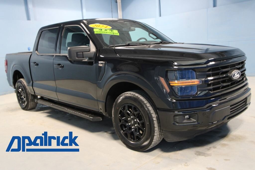 2024 Ford F-150 XLT We want you to shop confidently for your next used car at The BIG Ford Store, D-Patrick Ford. We are located on Highway 41 and Walnut in Evansville, right next to the Lloyd Expressway. Buy this used vehicle 100% online or in-store. This pre-owned vehicle was put through an extensive inspection before hitting our lot. Because of this, we are able to offer a 3-month/3,000-mile comprehensive limited warranty. You also get our Love It or Return It 5-day, 300-mile Exchange Policy. See our website for more details on both. We also offer extended service plans, vehicle protection plans, and offer a CarFax vehicle history report. *Prices listed do not include a $250 documentation fee, applicable tax, title, tags, license, or $195 service and preparation. All pricing, vehicle information, and features (such as accessories and color) are believed to be accurate, but we do not warrant or guarantee such accuracy. The prices shown above may vary from region to region, and incentives are subject to change. Some offers listed may not be available to all customers. All online sale commitments are subject to confirmation of continued availability of vehicle. Once availability is confirmed, online sale agreement becomes binding upon the parties. If any information found on the website is thought to be erroneous, please verify information with a customer service representative. See dealer for full details. Looking to sell your current vehicle? We buy cars for cash. Every test drive at D-Patrick Ford in Evansville earns $10 to a local charity. Schedule your test drive today! 3.15 Axle Ratio, 3.55 Axle Ratio, 4-Wheel Disc Brakes, 6 Speakers, 6 Black Running Boards, ABS brakes, Air Conditioning, Alloy wheels, AM/FM radio: SiriusXM with 360L, Auto High-beam Headlights, Auto-dimming Rear-View mirror, Automatic temperature control, Black Exterior Badging, Black Grille, Body-Color Front & Rear Bumpers, Brake assist, Bumpers: chrome, Chrome wheels, Cloth 40/20/40 Front Seat, Compass, Dark Interior Appliques, Delay-off headlights, Driver door bin, Driver vanity mirror, Dual front impact airbags, Dual front side impact airbags, Electronic Stability Control, Emergency communication system: SYNC 4 911 Assist, Equipment Group 301A Standard, Floor Shifter, Front anti-roll bar, Front Center Armrest w/Storage, Front dual zone A/C, Front fog lights, Front License Plate Bracket, Front reading lights, Front wheel independent suspension, Fully automatic headlights, GVWR: 6,426 lbs Payload Package, Heated door mirrors, Illuminated entry, Low tire pressure warning, Navigation system: Connected Navigation, Occupant sensing airbag, Outside temperature display, Overhead airbag, Overhead console, Panic alarm, Passenger door bin, Passenger vanity mirror, Power door mirrors, Power driver seat, Power steering, Power windows, Radio data system, Radio: AM/FM SiriusXM w/360L, Rear reading lights, Rear step bumper, Rear window defroster, Remote keyless entry, Security system, Speed control, Split folding rear seat, Steering wheel mounted audio controls, SYNC 4 w/Enhanced Voice Recognition, Tachometer, Telescoping steering wheel, Tilt steering wheel, Traction control, Trip computer, Unique Sport Cloth 40/Console/40 Front-Seats, Variably intermittent wipers, Voltmeter, Wheels: 18 Chrome-Like PVD, Wheels: 18 Gloss Black, XLT Black Appearance Package. CARFAX One-Owner. 4D SuperCrew XLT 10-Speed Automatic 5.0L V8 RWD Black Metallic CALL TODAY (812) 625-4823 OR SHOP ONLINE AT WWW.DPATRICKFORD.COM.