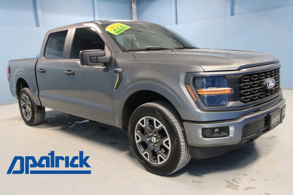 2024 Ford F-150 STX We want you to shop confidently for your next used car at The BIG Ford Store, D-Patrick Ford. We are located on Highway 41 and Walnut in Evansville, right next to the Lloyd Expressway. Buy this used vehicle 100% online or in-store. This pre-owned vehicle was put through an extensive inspection before hitting our lot. Because of this, we are able to offer a 3-month/3,000-mile comprehensive limited warranty. You also get our Love It or Return It 5-day, 300-mile Exchange Policy. See our website for more details on both. We also offer extended service plans, vehicle protection plans, and offer a CarFax vehicle history report. *Prices listed do not include a $250 documentation fee, applicable tax, title, tags, license, or $195 service and preparation. All pricing, vehicle information, and features (such as accessories and color) are believed to be accurate, but we do not warrant or guarantee such accuracy. The prices shown above may vary from region to region, and incentives are subject to change. Some offers listed may not be available to all customers. All online sale commitments are subject to confirmation of continued availability of vehicle. Once availability is confirmed, online sale agreement becomes binding upon the parties. If any information found on the website is thought to be erroneous, please verify information with a customer service representative. See dealer for full details. Looking to sell your current vehicle? We buy cars for cash. Every test drive at D-Patrick Ford in Evansville earns $10 to a local charity. Schedule your test drive today! 4WD, 3.31 Axle Ratio, 3.55 Axle Ratio, 4-Wheel Disc Brakes, 6 Speakers, ABS brakes, Air Conditioning, Alloy wheels, AM/FM radio: SiriusXM with 360L, Auto High-beam Headlights, Brake assist, Bumpers: body-color, Compass, Delay-off headlights, Driver door bin, Dual front impact airbags, Dual front side impact airbags, Electronic Stability Control, Emergency communication system: SYNC 4 911 Assist, Equipment Group 200A Standard, Front anti-roll bar, Front Bucket Seats, Front Center Armrest, Front fog lights, Front License Plate Bracket, Front reading lights, Front wheel independent suspension, Fully automatic headlights, GVWR: 6,650 lbs Payload Package, Heated door mirrors, Illuminated entry, Low tire pressure warning, Navigation system: Connected Navigation, Occupant sensing airbag, Outside temperature display, Overhead airbag, Overhead console, Panic alarm, Passenger door bin, Passenger vanity mirror, Plastic Drop-In Bedliner, Power door mirrors, Power steering, Power windows, Radio data system, Radio: AM/FM SiriusXM w/360L, Rear step bumper, Rear window defroster, Remote keyless entry, Security system, Speed control, Split folding rear seat, Steering wheel mounted audio controls, SYNC 4 w/Enhanced Voice Recognition, Tachometer, Telescoping steering wheel, Tilt steering wheel, Traction control, Tray Style Floor Liner w/Carpet Mats, Trip computer, Variably intermittent wipers, Voltmeter, Wheels: 20 Dark Gray w/Machined Aluminum, 4WD. CARFAX One-Owner. Clean CARFAX. 4D SuperCrew STX 10-Speed Automatic 5.0L V8 4WD Gray Metallic CALL TODAY (812) 625-4823 OR SHOP ONLINE AT WWW.DPATRICKFORD.COM.