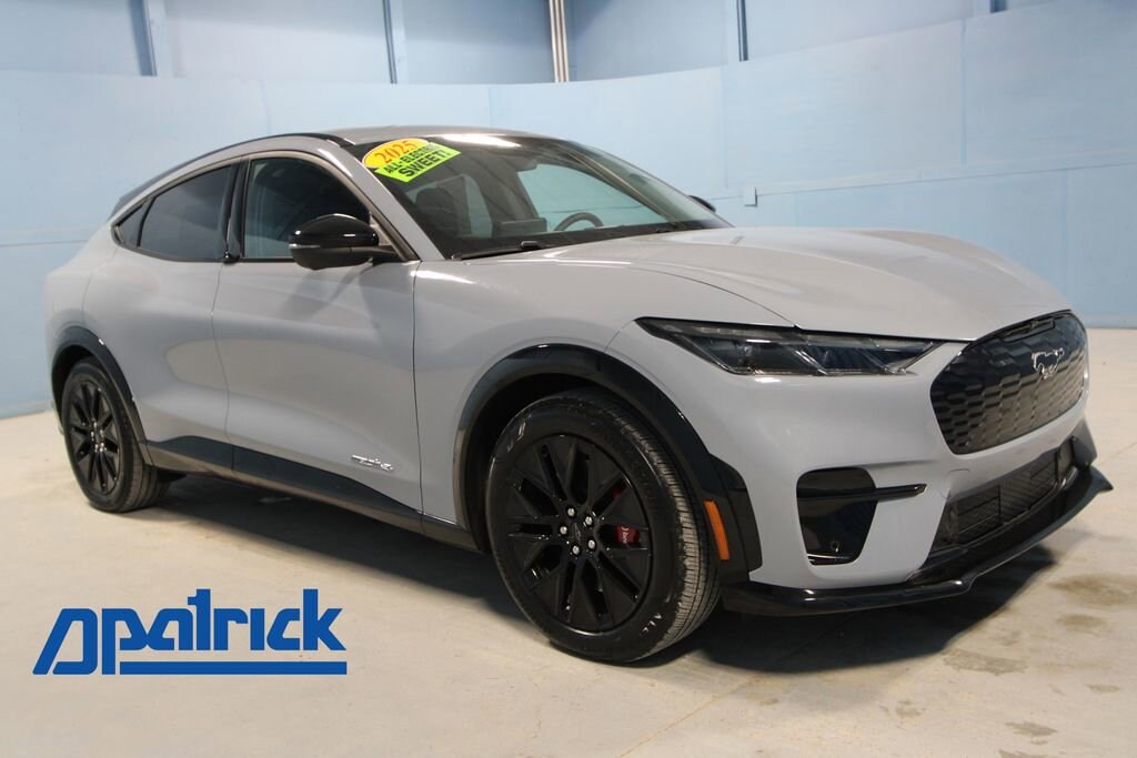 2025 Ford Mustang Mach-E Premium Recent Arrival! We want you to shop confidently for your next used car at The BIG Ford Store, D-Patrick Ford. We are located on Highway 41 and Walnut in Evansville, right next to the Lloyd Expressway. Buy this used vehicle 100% online or in-store. This pre-owned vehicle was put through an extensive inspection before hitting our lot. Because of this, we are able to offer a 3-month/3,000-mile comprehensive limited warranty. You also get our Love It or Return It 5-day, 300-mile Exchange Policy. See our website for more details on both. We also offer extended service plans, vehicle protection plans, and offer a CarFax vehicle history report. *Prices listed do not include a $250 documentation fee, applicable tax, title, tags, license, or $195 service and preparation. All pricing, vehicle information, and features (such as accessories and color) are believed to be accurate, but we do not warrant or guarantee such accuracy. The prices shown above may vary from region to region, and incentives are subject to change. Some offers listed may not be available to all customers. All online sale commitments are subject to confirmation of continued availability of vehicle. Once availability is confirmed, online sale agreement becomes binding upon the parties. If any information found on the website is thought to be erroneous, please verify information with a customer service representative. See dealer for full details. Looking to sell your current vehicle? We buy cars for cash. Every test drive at D-Patrick Ford in Evansville earns $10 to a local charity. Schedule your test drive today! 10 Speakers, 4-Wheel Disc Brakes, ABS brakes, Air Conditioning, Alloy wheels, AM/FM radio: SiriusXM with 360L, Apple CarPlay/Android Auto, Auto High-beam Headlights, Auto-dimming Rear-View mirror, Automatic temperature control, BlueCruise Equipped (1-Year Plan), Brake assist, Brembo Branded Front Brakes, Bumpers: body-color, Cellular Connectivity for Audio/Video Streaming, Compass, Delay-off headlights, Driver door bin, Driver vanity mirror, Dual front impact airbags, Dual front side impact airbags, Electronic Stability Control, Emergency communication system: 911 Assist, Equipment Group 300A Standard Package, Exterior Parking Camera Rear, Ford Connectivity Package (One-Time Purchase), Four wheel independent suspension, Front anti-roll bar, Front Bucket Seats, Front Center Armrest, Front dual zone A/C, Front reading lights, Fully automatic headlights, Garage door transmitter, Heated door mirrors, Heated front seats, Heated steering wheel, Heated/Ventilated Perforated ActiveX Bucket Seats, Illuminated entry, Internet access capable: FordPass Connect, Knee airbag, Low tire pressure warning, Memory seat, Mobile Power Cord (120V/240V), Navigation system: Connected Navigation, Occupant sensing airbag, Outside temperature display, Overhead airbag, Overhead console, Panic alarm, Passenger door bin, Passenger vanity mirror, Power door mirrors, Power driver seat, Power Liftgate, Power passenger seat, Power steering, Power windows, Radio data system, Radio: B&O Sound System by Bang & Olufsen, Rain sensing wipers, Rear anti-roll bar, Rear seat center armrest, Rear side impact airbag, Rear window defroster, Rear window wiper, Red Painted Front & Rear Brake Calipers, Remote keyless entry, Security system, SiriusXM w/360L, Speed control, Speed-sensing steering, Speed-Sensitive Wipers, Split folding rear seat, Spoiler, Sport Appearance Package, Sport Pedals, Steering wheel mounted audio controls, SYNC 4A w/Enhanced Voice Recognition, Telescoping steering wheel, Tilt steering wheel, Traction control, Trip computer, Turn signal indicator mirrors, Unique Front Fascia, Variably intermittent wipers, Ventilated front seats, Wheels: 19 Bright Machined-Face Aluminum, Wheels: 19 Monochromatic High Gloss Black-Painted. CARFAX One-Owner. Clean CARFAX. 4D Sport Utility Premium Single-Speed Automatic Dual Electric Motor AWD Gray Metallic CALL TODAY (812