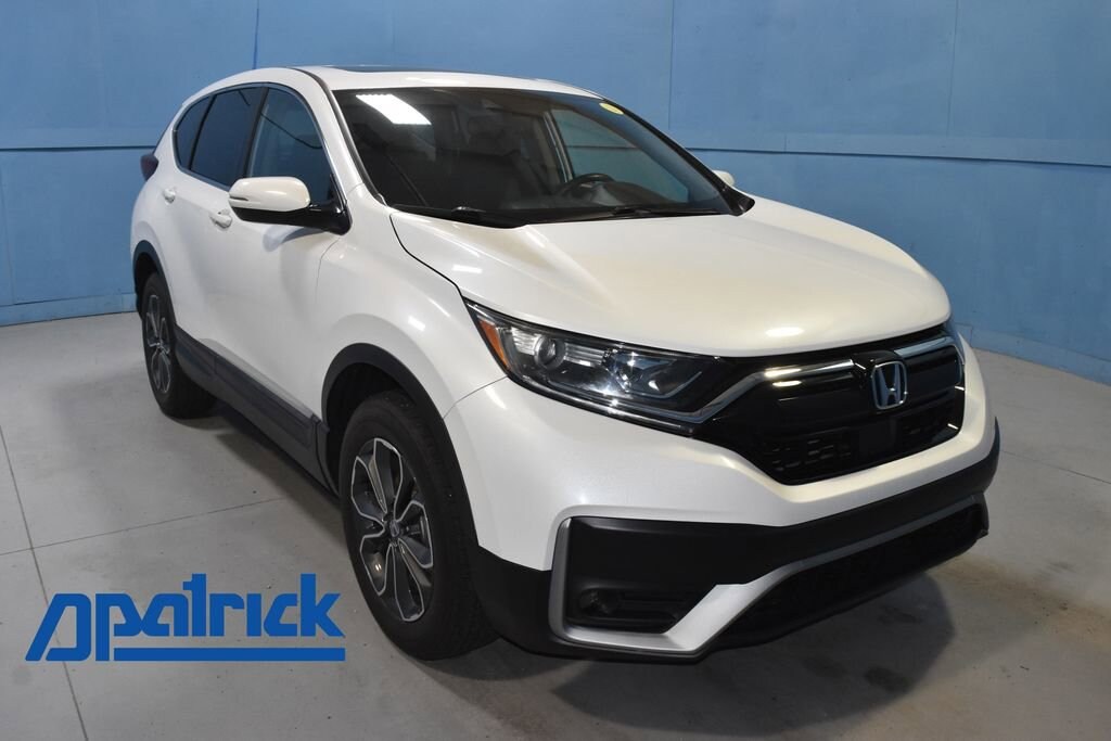 2022 Honda CR-V EX-L Recent Arrival! *Prices listed do not include applicable tax, title, tags, license. Prices do include a $250 Documentation Fee and $175 Service & Preparation. All pricing, vehicle information, and features (such as accessories and color) are believed to be accurate, but we do not warrant or guarantee such accuracy. The prices shown above may vary from region to region, and incentives are subject to change. Some offers listed may not be available to all customers. All online sale commitments are subject to confirmation of continued availability of vehicle. Once availability is confirmed, online sale agreement becomes binding upon the parties. If any information found on the website is thought to be erroneous, please verify information with a customer service representative. See dealer for full details. AWD, 18 Alloy Wheels, 4-Wheel Disc Brakes, 5.64 Axle Ratio, 8 Speakers, ABS brakes, Adaptive Cruise Control: Adaptive Cruise Control (ACC) with Low-Speed Follow, Air Conditioning, Alloy wheels, AM/FM radio: SiriusXM, Apple CarPlay/Android Auto, Auto High-beam Headlights, Auto-dimming Rear-View mirror, Automatic temperature control, Blind Spot Information (BSI) System warning, Brake assist, Bumpers: body-color, Compass, Delay-off headlights, Driver door bin, Driver vanity mirror, Dual front impact airbags, Dual front side impact airbags, Electronic Stability Control, Exterior Parking Camera Rear, Forward collision: Collision Mitigation Braking System (CMBS) + FCW mitigation, Four wheel independent suspension, Front anti-roll bar, Front Bucket Seats, Front Center Armrest, Front dual zone A/C, Front fog lights, Front reading lights, Garage door transmitter: HomeLink, Heated door mirrors, Heated Front Bucket Seats, Heated front seats, Illuminated entry, Leather Seat Trim, Leather Shift Knob, Low tire pressure warning, Memory seat, Occupant sensing airbag, Outside temperature display, Overhead airbag, Overhead console, Panic alarm, Passenger door bin, Passenger vanity mirror, Power door mirrors, Power driver seat, Power Liftgate, Power moonroof, Power passenger seat, Power steering, Power windows, Radio data system, Radio: 180-Watt AM/FM/HD/SiriusXM Audio System, Rear anti-roll bar, Rear seat center armrest, Rear window defroster, Rear window wiper, Remote keyless entry, Security system, Speed control, Speed-sensing steering, Speed-Sensitive Wipers, Split folding rear seat, Spoiler, Steering wheel mounted audio controls, Tachometer, Telescoping steering wheel, Tilt steering wheel, Traction control, Trip computer, Turn signal indicator mirrors, Variably intermittent wipers, AWD. CARFAX One-Owner. 4D Sport Utility EX-L CVT 1.5L I4 DOHC 16V AWD Platinum White Pearl (812) 477-6201 and shop online at www.dpathonda.com.