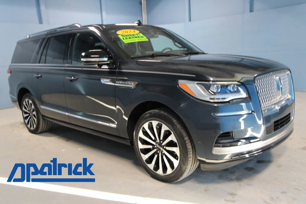 2024 Lincoln Navigator L Reserve We want you to shop confidently for your next used car at The BIG Ford Store, D-Patrick Ford. We are located on Highway 41 and Walnut in Evansville, right next to the Lloyd Expressway. Buy this used vehicle 100% online or in-store. This pre-owned vehicle was put through an extensive inspection before hitting our lot. Because of this, we are able to offer a 3-month/3,000-mile comprehensive limited warranty. You also get our Love It or Return It 5-day, 300-mile Exchange Policy. See our website for more details on both. We also offer extended service plans, vehicle protection plans, and offer a CarFax vehicle history report. *Prices listed do not include a $250 documentation fee, applicable tax, title, tags, license, or $195 service and preparation. All pricing, vehicle information, and features (such as accessories and color) are believed to be accurate, but we do not warrant or guarantee such accuracy. The prices shown above may vary from region to region, and incentives are subject to change. Some offers listed may not be available to all customers. All online sale commitments are subject to confirmation of continued availability of vehicle. Once availability is confirmed, online sale agreement becomes binding upon the parties. If any information found on the website is thought to be erroneous, please verify information with a customer service representative. See dealer for full details. Looking to sell your current vehicle? We buy cars for cash. Every test drive at D-Patrick Ford in Evansville earns $10 to a local charity. Schedule your test drive today! 14 Speakers, 26mm Radiator, 3.73 Axle Ratio, 3rd row seats: split-bench, 4-Wheel Disc Brakes, ABS brakes, Adaptive suspension, Adjustable pedals, Air Conditioning, Alloy wheels, AM/FM radio: SiriusXM with 360L, Apple CarPlay/Android Auto, Audio memory, Auto High-beam Headlights, Auto Start-Stop Technology, Auto tilt-away steering wheel, Auto-dimming door mirrors, Auto-dimming Rear-View mirror, Auto-leveling suspension, Automatic temperature control, Bodyside moldings, Brake assist, Bumpers: body-color, Class IV w/4-Pin & 7-Pin Connectors, Compass, Delay-off headlights, Driver door bin, Driver vanity mirror, Driver's Seat Mounted Armrest, Dual front impact airbags, Dual front side impact airbags, Electronic Stability Control, Electronic Traction Assist (eLSD), Emergency communication system: 911 Assist, Equipment Group 201A Reserve I, Exterior Parking Camera Rear, Four wheel independent suspension, Front anti-roll bar, Front Bucket Seats, Front dual zone A/C, Front fog lights, Front reading lights, Front Tow Hooks, Fully automatic headlights, Garage door transmitter, Genuine wood dashboard insert, Genuine wood door panel insert, Head restraints memory, Heads-Up Display, Heated door mirrors, Heated front seats, Heated rear seats, Heated steering wheel, Heavy-Duty Trailer Tow Package, HVAC memory, Illuminated 1st & 2nd Row Seat Belts, Illuminated entry, Lane Departure Warning System, Leather steering wheel, Lincoln Lit Star in Grille, Low tire pressure warning, Luxury Package, Memory seat, Navigation system: Connected Navigation (1-year trial), Occupant sensing airbag, Outside temperature display, Overhead airbag, Overhead console, Panic alarm, Passenger door bin, Passenger seat mounted armrest, Passenger vanity mirror, Pedal memory, Perfect Position Seats (30-Way) w/Active Motion, Power adjustable rear head restraints, Power door mirrors, Power driver seat, Power Liftgate, Power moonroof: Panoramic Vista Roof, Power passenger seat, Power steering, Power windows, Prem Lthr Auto Htd/Ventiltd Perfect Position Seats, Pro-Trailer Backup Assist 2.0, Radio data system, Radio: Revel Audio System w/Satelllite/AM/FM/HD, Radio: Revel Ultima 3D Audio System w/28 Speakers, Rain sensing wipers, Rear air conditioning, Rear anti-roll bar, Rear audio controls, Rear reading lights, Rear window defroster, Rear window wiper, Reclining 3rd row seat, Remote keyless e