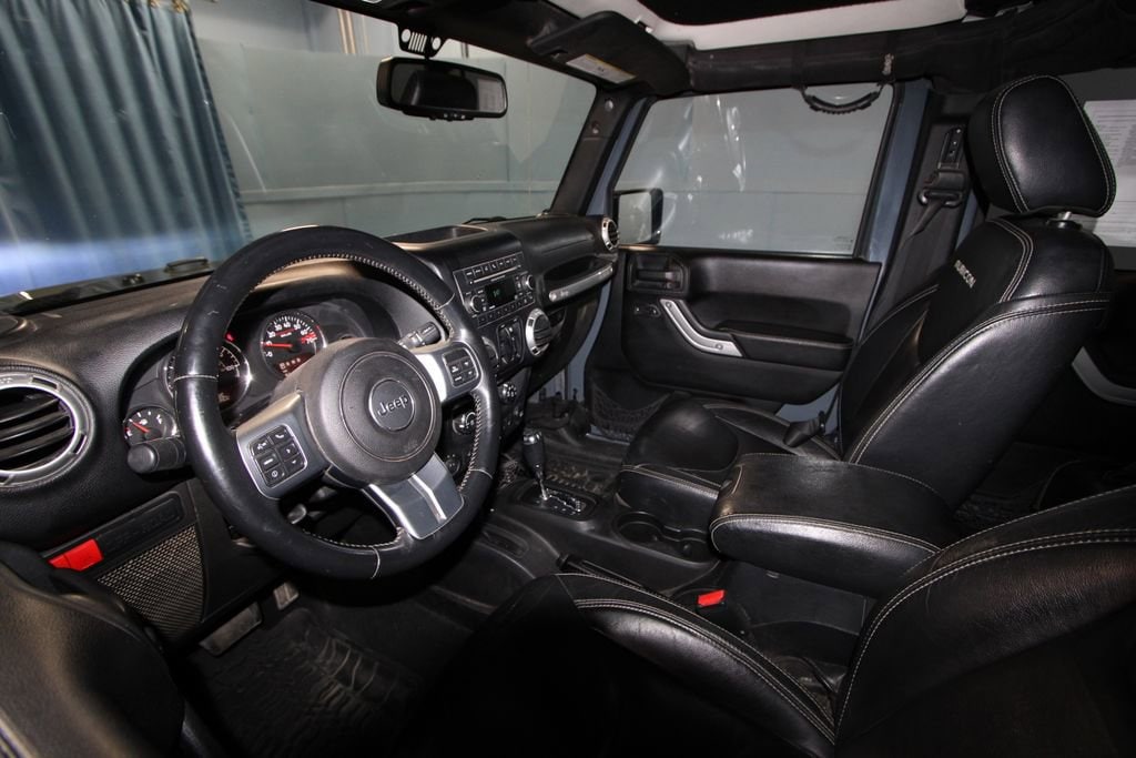 - DUAL TOP GROUP -inc: Black 3-Piece Hard Top If ordering without AEM (Dual Top Group) the black soft top will not be included Freedom Panel Storage Bag Rear Window Defroster Rear Window Wiper/Washer Delete Sunrider Soft Top,BODY COLOR 3-PIECE HARD TOP -inc: If ordering without AEM (Dual Top Group) the black soft top will not be included,ADD 4.10 AXLE RATIO,HEATED FRONT SEATS,ANVIL CLEARCOAT,TRANSMISSION: 5-SPEED AUTOMATIC (W5A580) -inc: Tip Start 3.73 Rear Axle Ratio Hill Descent Control,ENGINE: 3.6L V6 24V VVT (STD),MANUFACTURER'S STATEMENT OF ORIGIN,BODY COLOR FENDER FLARES,REMOTE START SYSTEM,SUPPLEMENTAL FRONT SEAT SIDE AIR BAGS,AIR CONDITIONING W/AUTO TEMP CONTROL -inc: Humidity Sensor Air Filtering,4.10 REAR AXLE RATIO (STD),FREEDOM TOP HARD TOP HEADLINER,QUICK ORDER PACKAGE 24J RUBICON HARD ROCK -inc: Engine: 3.6L V6 24V VVT Transmission: 5-Speed Automatic (W5A580) Steel Front Bumper Silver Interior Accents Low Gloss Black Wrangler Decal Chrome/Leather Wrapped Shift Knob MOPAR Dealer Installed Tow Strap Kit MOPAR Rock Rails (DISC) Premium EVIC Message Center Rubicon Hood Decal Hood w/Power Dome Rubicon Hard Rock Package Red Trail Rated Badge Red Front & Rear Tow Hooks Steel Rear Bumper Black/Chrome Screws Fuel Filler Door,BLACK LEATHER TRIMMED BUCKET SEATS -inc: Front Seat Back Map Pockets Driver Height Adjuster Seat Heated Front Seats,MAX TOW PACKAGE -inc: Class II Receiver Hitch Trailer Tow w/4-Pin Connector Wiring,Four Wheel Drive,Locking/Limited Slip Differential,Locking/Limited Slip Differential,Power Steering,ABS,4-Wheel Disc Brakes,Brake Assist,Locking/Limited Slip Differential,Brake Actuated Limited Slip Differential,Aluminum Wheels,Tires - Front On/Off Road,Tires - Rear On/Off Road,Conventional Spare Tire,Convertible Soft Top,Convertible Soft Top,Heated Mirrors,Power Mirror(s),Privacy Glass,Intermittent Wipers,Variable Speed Intermittent Wipers,Rollover Protection Bars,Power Door Locks,Automatic Headlights,Fog Lamps,AM/FM Stereo,CD Player,Satellite Radio,MP3 Capability,Auxiliary Audio Input,Requires Subscription,Steering Wheel Audio Controls,Auxiliary Audio Input,Premium Sound System,Pass-Through Rear Seat,Rear Bench Seat,Adjustable Steering Wheel,Trip Computer,Power Windows,Leather Steering Wheel,Keyless Entry,Power Door Locks,Cruise Control,A/C,Auto-Dimming Rearview Mirror,Driver Vanity Mirror,Passenger Vanity Mirror,Floor Mats,Power Windows,Power Door Locks,Trip Computer,Security System,Immobilizer,Traction Control,Stability Control,Traction Control,Driver Air Bag,Passenger Air Bag,Passenger Air Bag Sensor,Child Safety Locks